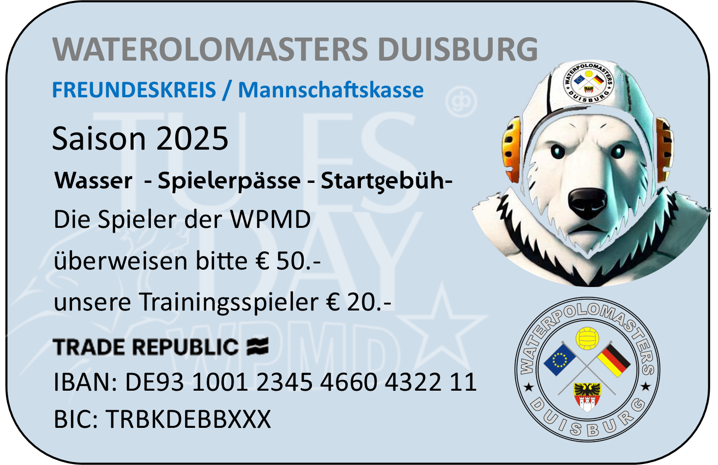 Alle die mit den WPMD auf Turnieren spielen überweisen Bitte .- 50 € auch ASCD Mitglieder